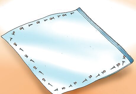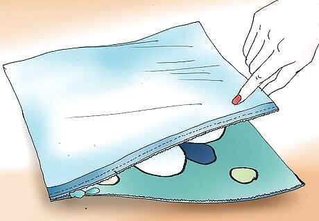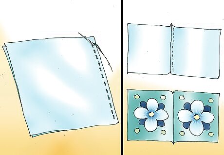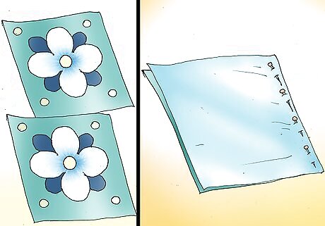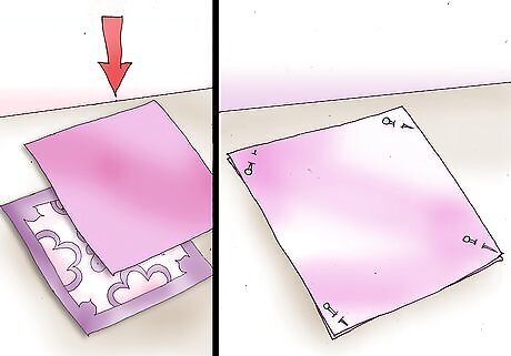 Place 1 piece of fabric on a table, right-side up. Set the other piece of fabric on top of the first, right-side down. Pin the fabrics together on all 4 sides.