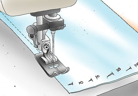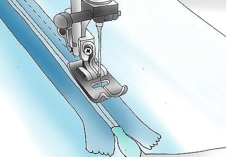 Put the zipper foot on your sewing machine. Stitch the zipper to the seam on each side of the fabric.