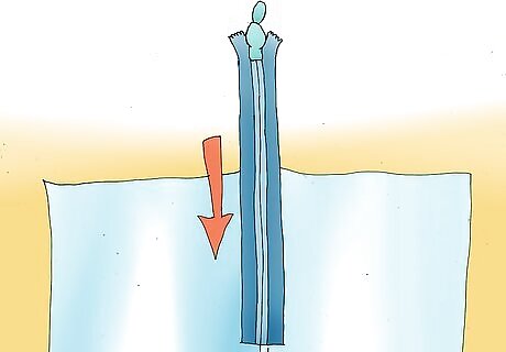 Place the zipper on the wrong side of the seam, and center the zipper's teeth over the sewn portion of the seam.