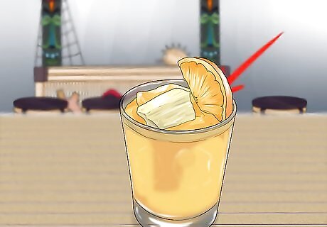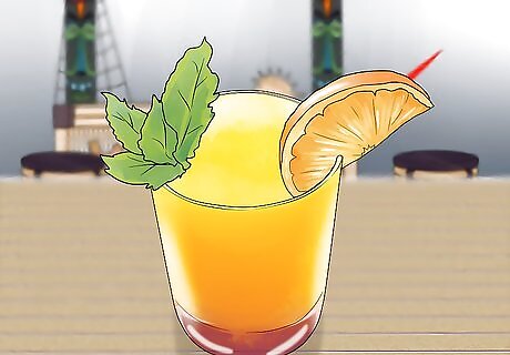 Keep several types of rum on hand to make most tiki-themed drinks. Rum is king in Tiki bars, and even if you don't feel like mixing up cocktails or blended drinks, a couple bottles of rum will cover the basics for you. You should consider a light rum, a dark rum, and an overproof rum at a minimum. Citrus juices, from pineapple to orange, are also good mixers and common Tiki ingredients. Orgeat is an almond-flavored spirit common in many Tiki drinks. Many tiki drinks, like the classic Piña Colada, require a blender as well.