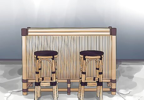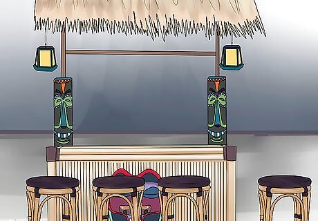 Use split bamboo rods to cover up corners and edges. Long bamboo rods cut in half can take out any right-angles you have, lending a softer edge to lean on as well as a bit of essential Tiki ambiance. Bamboo can be cut easily with a table saw, but you can also buy it pre-split from some retailers.