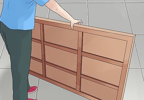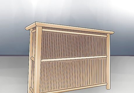 Cover any plywood with bamboo paneling, woven matting, or palm fronds. Choose the decor you like best. Woven matting and bamboo paneling are probably the easiest to add, but palm fronds are a good way to add some frills if desired. Hang a woven mat, or nail up more paneling, for the back wall as well. Another idea is to use stencils and paint to make the front of the bar look like salvaged wood. Write things like "FRAGILE," "South Seas Trading Company," "Rum Shipment," etc.