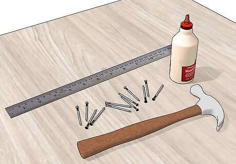 Gather your supplies. Keep all your basic tools in your workspace. If using power tools, make sure that you have access to power outlets. At the very least, you'll want a ruler, hammer, nails, wood glue or putty, and of course, your boards. If using power tools, use caution and always wear eye protection.