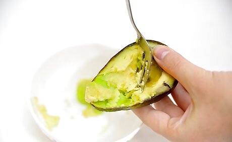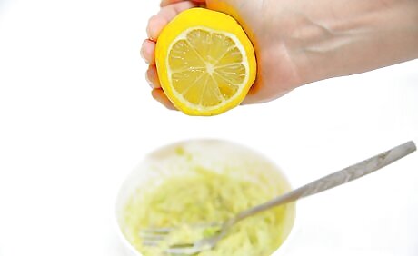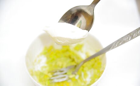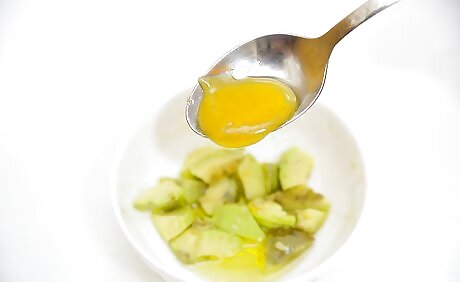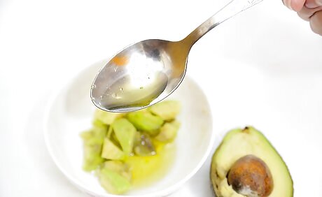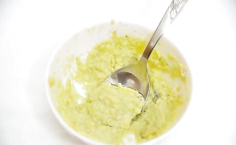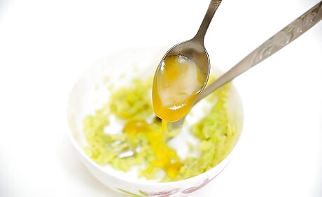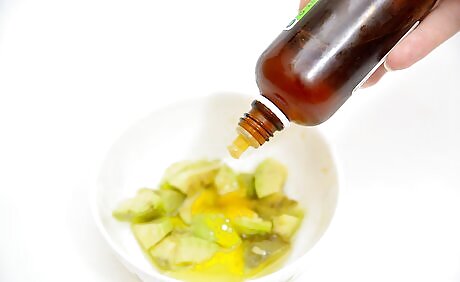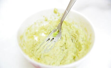 Peel, pit, and mash half of an avocado in a small bowl. Use the back of a fork to smoosh the avocado up well, and to get rid of any lumps. Avocado is great for the skin, because it is full of healthy fats and oils. These fats and oils help moisturize and nourish your skin. Save the other half of the avocado for eating later, or for another mask.