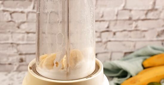 Blend until smooth for about 1 to 2 minutes. There should be no chunks or lumps of banana or ice. From time to time, you may want to open the blender, and use a spatula to push the smoothie down the walls of the blender. This will help everything mix together more evenly.
