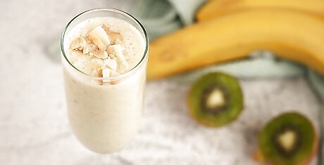 Peel and slice 1 banana. Try to use a fresh, ripe banana. You can also use a frozen banana instead for a thicker smoothie. Cutting the banana up first will give you a smoother drink in the end.