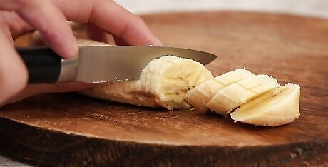 Peel and slice 2 bananas. Try to use fresh, ripe bananas if you can. If you like your smoothies extra thick, use frozen bananas instead. Cutting the bananas up first will help make your smoothie smoother.