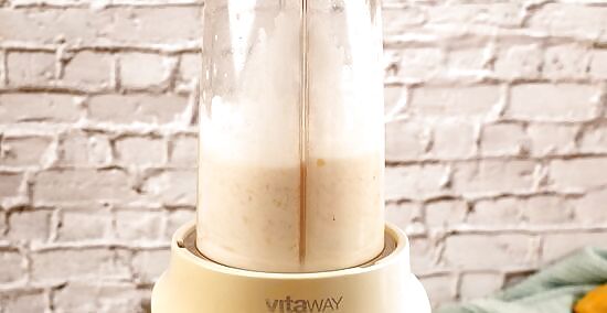 Blend until everything is smooth, about 1 to 2 minutes. There should be no chunks of banana left when you are done. From time to time, you may need to push the smoothie down the walls of the blender. This will help things blend more evenly.