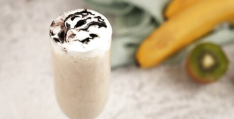 Pour the smoothie into 1 or 2 tall glasses. For a fancier touch, consider using a fancy milkshake glass with a short stem and wide brim. If you need to, use a spatula to help guide the smoothie into the glasses.