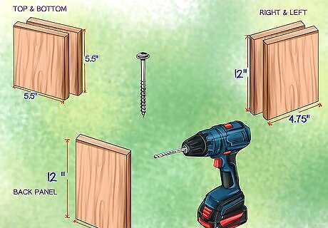 Construct a box from cedar pieces. You can also build your own structure for an insect hotel using cedar pieces. Much like an old birdhouse, cedar pieces will make for a fairly small hotel. You will need two cedar pieces of 5 1/2″(h) x 5 1/2″(w) for the top and bottom. The back panel will be 12″(h) x 5 1/2″(w). The right and left panel will be 12″(h) x 4 3/4″(w). You can get cedar cut at a local hardware store. Use a power drill to drill holes in the cedar box, and then use weather-resistant screws to piece the different parts together. Screw the right and left panel onto the top and bottom panel. This will give you a rectangular outline that you can easily place over the bottom panel. Then, drill the bottom panel in place.