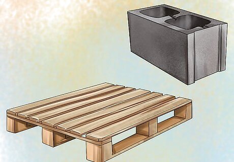 Use pallets and cinderblocks. Some people want a very large insect hotel. This can be easily made by using old pallets and cinderblocks to create a tall structure. If you don't have old pallets lying around, you can make a trip to the hardware store. However, any long flat object, like old boards of wood, can be used instead. First, select where you want to place your structure. Then, place four cinderblocks on the ground in a rectangle shape and lie the pallets across them to form a floor-like structure. Place four more cinderblocks on top of the pallets, then build another floor. You can add as many stories as you would like to your bug hotel,