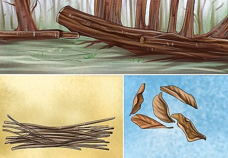 Gather materials outside. You want to fill your insect hotel with as many items as possible. Once you've made a few sections dedicated to holes, find materials outside. Place these materials in other sections of the insect hotel, forming a busy habitat that caters to many different types of bugs. You should look for the following when building your insect hotel: Dead wood Dry leaves Old bark Dry sticks and twigs
