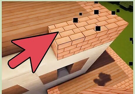 Build the sloping roofs. Normally, the roof of an Italian villa is a low, cheery red tile that slopes upwards, and sometimes flattening itself on the top. In Minecraft, this means that plain clay Bricks are your best bet for this.Take some Brick slabs, then place them along the top half of the outer portion of your walls, on top of the ceiling blocks. Then, on top of the outermost ceiling blocks themselves, place another set of slabs until it circles the entire wall. (b) = brick slabs b = brick Blocks Top: (b)(b)(b)(b)(…) (b)(b)(b)(b)(…) (b)(b) X X(b)(b) X X (b)(b) X X (…)(…) Side: (b)(b)(b)(b) (b)(b)(b)(b) p w w w p p W g W p p W g W p p w w w p Place Brick Blocks behind the slabs on top of the ceiling blocks, making sure to fill up the rest of the roof. Top: (b)(b)(b)(b)(…) (b)(b)(b)(b)(…) (b)(b) b b(b)(b) b b (b)(b) b b (…)(…) Side: b b b b (b)(b)(b)(b) (b)(b)(b)(b) p w w w p p W g W p p W g W p p w w w p Add slabs on top of the Brick Blocks, just after the first row of blocks. Top: (b)(b)(b)(b)(…) (b)(b)(b)(b)(…) (b)(b) b (b) (b)(b) b (b) (b)(b) b (b) (…)(…) Side: (b)(b)(b)(b) b b b b (b)(b)(b)(b) (b)(b)(b)(b) p w w w p p W g W p p W g W p p w w w p Keep repeating this pattern of alternating slabs and bricks until you fill out the rest of the rooftop or reach enough layers according to your preference. Ideally, the layers should be around 5–6 in a smaller house. This will lend your villa a gracefully sloping roof. If this seems to tedious to you, you can just use Stairs instead, then after the fourth layer of stairs, you simply place slabs or bricks to close off the roof.