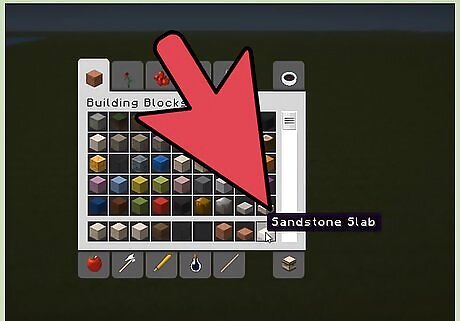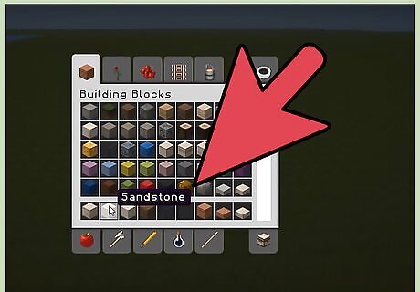 Consider Sandstone for walls. If you find yourself near the ocean or the desert, you can find that Sandstone is the most appropriate block for this venture. Sandstone's pale-yellow color and cobbled texture is appropriate, if not perfect, for the villa's walls. You can also make Sandstone variations—like Chiseled Sandstone, which has carvings all over it, and Smooth Sandstone, which is very much what its name states?—to widen your range of materials when building. Sandstone can also be crafted into Slabs and Stairs. If you dig a few blocks down from any sandy area, you'll find some natural Sandstone. This is because regular Sand is affected by gravity and tends to fall down without any supporting “solid” blocks. You can also make Sandstone by filling a 2x2 square on your crafting grid with Sand. Smooth Sandstone can be made by placing Sandstone on a 2x2 square on your crafting menu. Chiseled Sandstone is made by stacking two Sandstone Blocks on top of each other in a crafting grid.