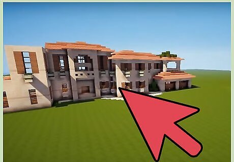 Build the open walls. Italian villas have very large windows incorporated in their housing designs, giving them an open and sunny look. The easiest way to do this is to create a pillar segment, so to speak, at least 5 blocks long. You'll also need three types of wall material, four blocks of wood of your preference, and some two Glass Blocks for each segment, depending on how wide you want it. Here's the general guide to your materials: p = pillar block w = wall block c = ceiling block W = Wood g = Glass (Panes or Blocks) X = empty space (...) = repeat Place down the block you chose for your pillar material. Count three blocks away from it, then place another pillar block on the fourth. Then build up the pillars up to four blocks high in total. p X X X p p X X X p p X X X p p X X X p Place your main wall material between the top and bottom rows of the wall. p w w w p p X X X p p X X X p p w w w p Place two blocks of Wood on each side of the ensuing gap, and fill the middle with Glass Panes or Glass Blocks. Lastly, place the ceiling blocks on top! c c c c c p w w w p p W g W p p W g W p p w w w p If you want to extend the wall, simply treat the pillar block as a base, count three blocks, then place another pillar and build up another section! c c c c c c c c c p w w w p w w w p p W g W p W g W p p W g W p W g W p p w w w p w w w p You can even expand the wall segment to make the windows wider, if you want! c c c c c c c p w w w w w p p W g g g W p p W g g g W p p w w w w w p For corners, take your pillar blocks then create an L-shape where the walls meet, then build the rest of the walls along the pillars! This is so the building stays symmetrical inside and out, and preserves the pattern. Top: p p w w w p w w w (…) p w w w p w w w (…) Building the second floor is similar. Within the building, above the ceiling blocks, place another row of the same material. Then on that new layer, slowly place more of the same material blocks until it fills up the room to make a floor. Then simply repeat the steps for creating wall sections, and fill out the ceiling with more ceiling blocks! Side: c c c c c p w w w p p W g W p p W g W p p w w w p c c c c c c c c c c p w w w p p W g W p p W g W p p w w w p Top: p p w w w p w w w (…) p c c c c c c c c (…) w c c c c c c c c (…) w c c c c c c c c (…) w c c c c c c c c (…) p c c c c c c c c (…) w c c c c c c c c (…) w c c c c c c c c (…) w c c c c c c c c (…) (…)