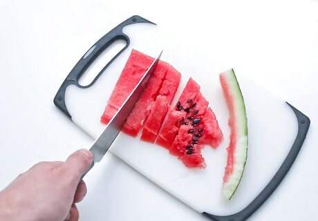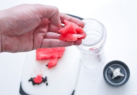 Cut up your watermelon. You'll only need about a cup (0.24 liters) of watermelon for a serving of this drink. It helps to cube the watermelon before you add it to the other ingredients because it makes it easier for the blender to chop. Watermelon contains L-citruilline, which is an amino acid that can help with muscle soreness.