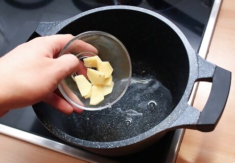 Make ginger water first. Add a little more than 2 cups (0.48 liters) of water to a small pot. Heat the water to boiling. Scrub the ginger clean, then cut it into pieces. Add the pieces to the water, and let it boil for about 15 minutes. It doesn't need to be a rolling boil, just a simmer, so turn the heat down if it seems too hot. When it's done, take it off the stove, and let the ginger sit in the water until the water is cool to the touch. It could take 15 to 30 minutes to cool, depending on the temperature of the room. Remove the ginger. Ginger may help with muscle soreness.