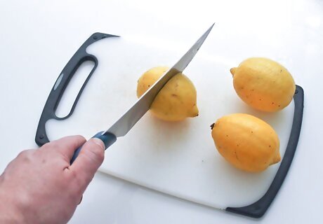 Prepare your lemons. Scrub the outside of the lemons. To help release the juices, you can either press down and roll the lemon back and forth on a hard surface or heat it in the microwave for about 30 seconds. Cut the lemons in half, and squeeze them into the jar you're using for your sports drink. The lemons provide potassium to the drink.