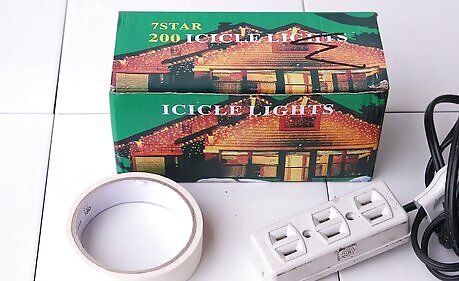 Pick up two strands of new icicle white lights, duct tape and an extension cord. You want the duct tape color to match the color of the paint you will be using to cover the hula hoop. Also, always go for new lights as lights from holidays past may have burned out or could be on their last leg.