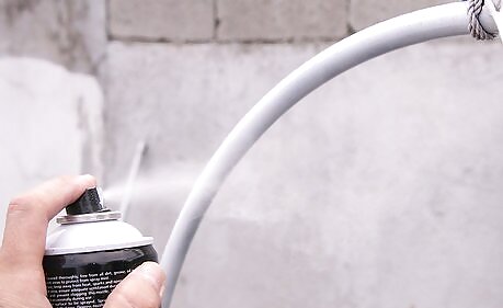 Spray paint the hula hoop and allow for ample dry time. Spread newspaper or cover the surface before you paint to protect your floor or room. Also, paint in a well ventilated area to avoid being exposed to hazardous fumes. Allow up to 48 hours for dry time depending on the number of coats you used and humidity levels. You don't want to start the project with a wet hula hoop. Spray paint the plastic pole tubing the same color and allow ample time for the tubing to dry.