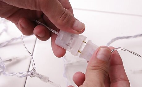 Run the light cord along one of the tubes (the closest to the end) and tape in place. Use the extension cord to plug into an outlet. Do the same if you're going to the twine.