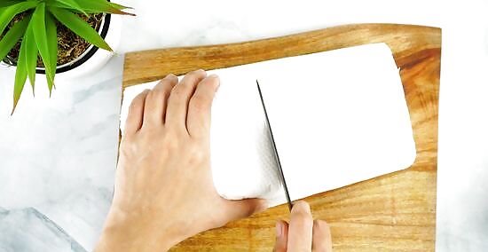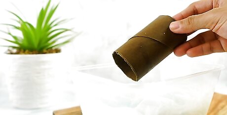 Cut a roll of paper towels in half widthwise. Get out a brand-new roll of paper towels and set it down on a clean surface. Use a sharp, non-serrated knife to cut the roll in half to create 2 equal-sized mini rolls. Do not use toilet paper. Even though it's the right width, it's too soft and will turn to mush. The type of paper towels that you use does not matter, but heavy-duty will work the best. Keep 1 of the paper towel roll halves out; set the other roll aside for another project.