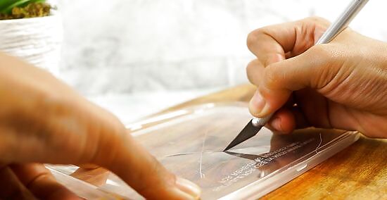 Cut an X-shaped in the lid, if needed. Most baby wipes containers already have a hole in the lid. If you are using a different container, however, it may not have a hole in it. Use a craft blade to cut a large X-shape in the middle of the lid.