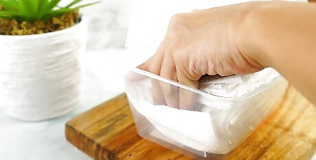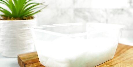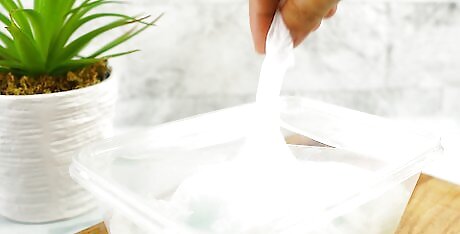 Let the solution soak for 5 to 10 minutes. If the paper towels near the top of the container are still dry, take them out and flip them over. You can also close the container tightly, flip it over, and wait another 5 to 10 minutes. If your container starts to leak when you flip it over, turn it right-side-up again and flip the paper towels over instead.