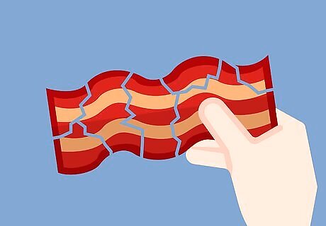 Break your bacon into chunks. Remove your bacon from the heat and let it sit out for 10 to 20 minutes to cool. Then, use your fingers to break the bacon into tiny chunks roughly the size of bacon bits.