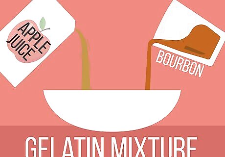Add the bourbon and apple juice. Pour your bourbon and apple juice into your gelatin mixture. Use a spoon to stir everything together into an even, uniform texture.