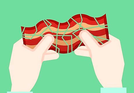 Crumble your bacon. Use your fingers to crumble the bacon into tiny pieces. Strive to get the bacon pieces as small as possible, so they look similar to bacon bits.
