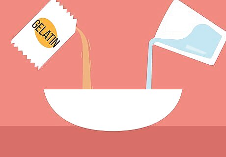 Combine the gelatin and water. Sprinkle the gelation on the bottom of a medium mixing bowl. Pour the cold water over the gelatin. Set the mixture aside until the gelatin has absorbed the water. When absorbed, the water will be mostly gone. Times vary, but this usually takes only a few minutes. Consult your gelatin's label for a specific timeframe.
