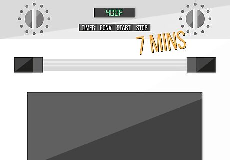 Cook your bacon at 400 °F (204 °C). Cook the bacon for seven minutes. Then, flip the bacon over and cook it for an additional five minutes. When done, bacon should be dark and crispy.