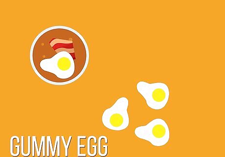 Top each shot with a gummy egg. Place a gummy egg on top of the bacon. You can buy gummy eggs at most candy stores or online.