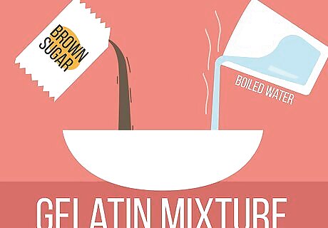 Mix the boiling water and brown sugar with the gelatin mixture. Immediately after boiling the water, pour it into the gelatin mixture. Use a wire whisk to mix everything into an even texture. Then, add the brown sugar and continue to whisk the ingredients until the sugar dissolves.
