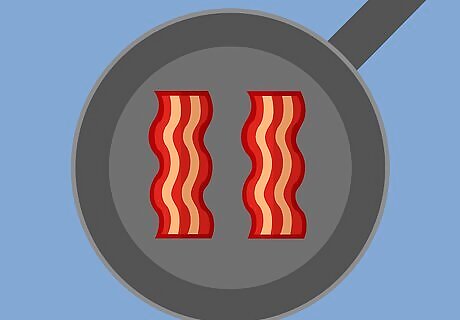 Cook your bacon until it's crispy. Place your bacon in a cold ungreased skillet, preferably cast iron, and heat it over medium heat. As you'll be crumbling the bacon later, add a splash of water to the skillet to help the bacon get extra crispy. Bacon generally takes between 8 and 11 minutes to cook, turning it on occasion.