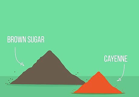 Combine the brown sugar and cayenne. In a small mixing bowl, measure out your brown sugar and cayenne. Use a fork or spoon to mix them until they make a uniform mixture.