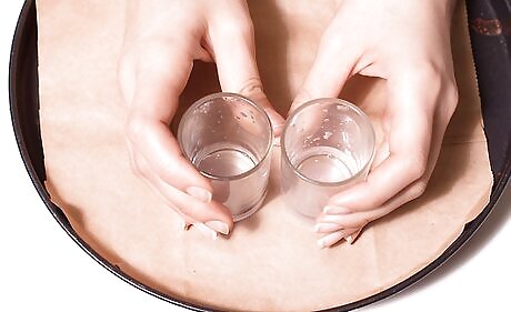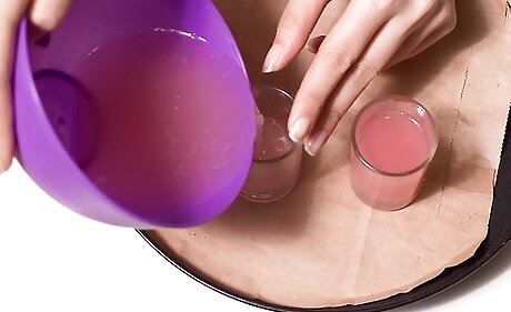 Prepare the shot cups. Make individual rows of 2-ounce plastic shot cups on a baking sheet.