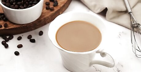 Replace the water with milk. Some say that the coffee itself is a lost cause. If the techniques above don't help, try replacing all the water with hot milk. Heat the milk over the stovetop until it begins to bubble around the edges. Pour it onto the coffee powder instead of water. Keep an eye on the milk and stir occasionally. Unattended milk can overflow rapidly.