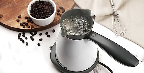 Heat a kettle of water. Don't use water that's been sitting in your kettle, which can pick up off-flavors or become "flat" from repeated boiling. If you live in a hard water area or your tap water just tastes bad, put it through a water filter first. If you don't have a kettle, microwave a mug of water before adding the coffee. Microwaved water can "explode" if overheated. Prevent this by putting a wooden popsicle stick or teaspoon of sugar in the cup.