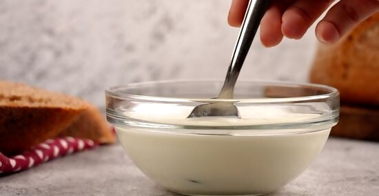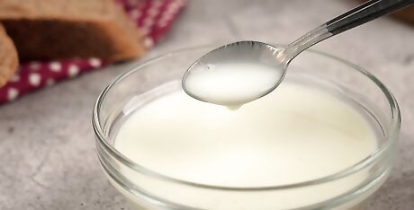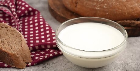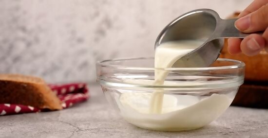 Mix 3/4 of a cup of plain, quality yogurt with 1/4 cup of milk.