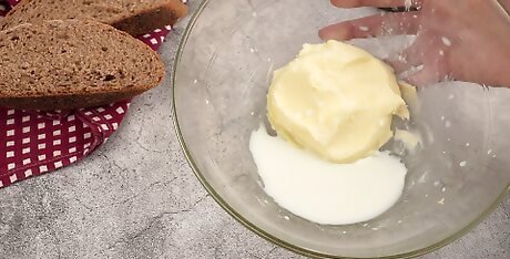 Pour a cup of milk into a mixing bowl.