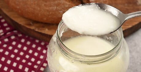 Make butter. There are various methods for doing this––see How to Make Butter for your preferred method.