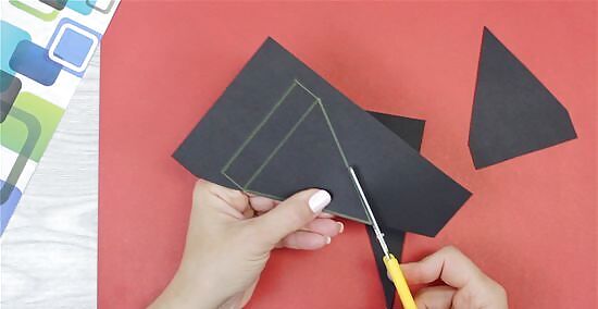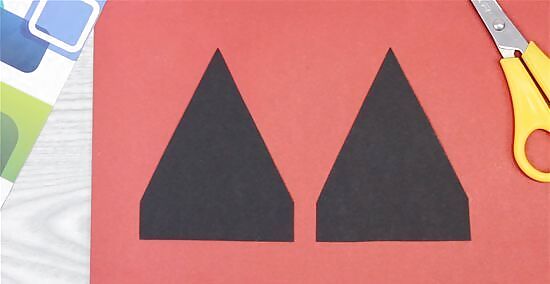 Draw your cat ears. Draw two equilateral triangles on your construction paper. 3 inch sides are a good size for these cat ears. After drawing your triangle, add ½” to the bottom. This will make it so you can wrap the bottom of the ears around your headband.