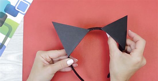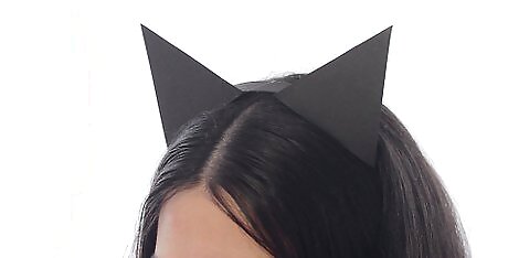 Attach your ears to the headband. Place your headband in the crease of your cat ears so that it sits flat. If you’re using tape, simply fold the ears around your headband and tape around them. If you’re gluing them, glue along the crease of your ears on the inside of your headband. Hot glue will hold best for your cat ears. However, if you’re using a plastic headband be careful not to burn through the plastic.