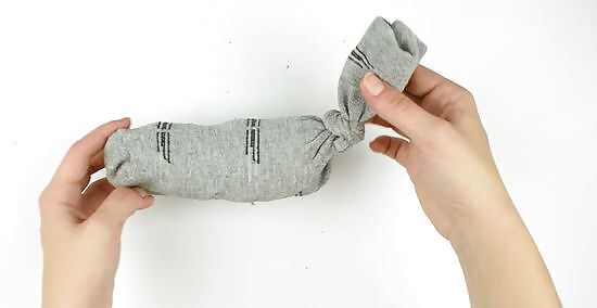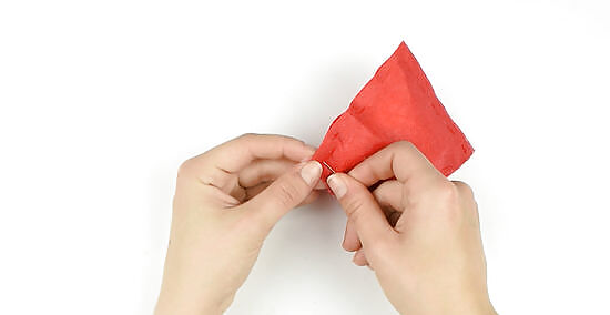 Fill a sock with tissue paper and catnip to make a long, crinkly toy. Crumple 5-6 pieces of tissue paper into loosely formed balls; use more or less tissue paper depending on the size of your sock. Then, take an old sock that does not have any holes or obvious worn spots in the fabric, and stuff it with 1-2 of the tissue paper balls. Add your desired amount of dry catnip into the sock, usually 1-2 tsp (1-2 g) and finish stuffing it with the remaining tissue paper balls. Then either tie off the end of the sock or use a needle and thread to stitch it closed. Instead of tissue paper, fill the sock with polyester or cotton fiberfill to make a plush toy. Add a small bell inside of the sock to further stimulate and entertain your cat. Make a smaller toy for your cat by using an infant’s sock and stuffing it with a little bit of cotton or polyester fiberfill and some catnip.