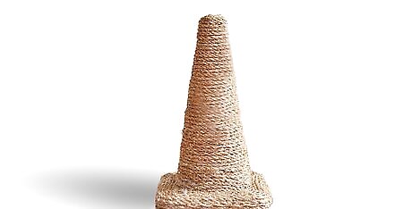 Turn a traffic cone into a lightweight scratching post for small living spaces. Put hot glue around the bottom portion of the cone where the triangular point meets the base. Begin wrapping your sisal rope, in a color and thickness of your choosing, around the cone on top of the glue. Continue laying a foundation of glue along the cone and wrapping it with the rope until the entire cone is covered. Then, allow it to dry for 1-2 hours before letting your cat scratch it. Purchase a rubber traffic cone in the sports section of your local department store or online with major retailers. Sisal rope can be purchased at a local hardware or craft store. Consider spray-painting the traffic cone your favorite color before wrapping it with rope. This way any portion of the cone that is visible will be aesthetically pleasing.