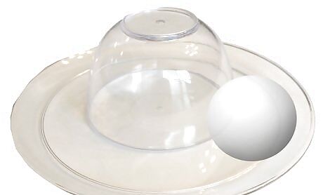 Place glue on bottom ridge of the bowl and place ping pong ball on the bottom dish.