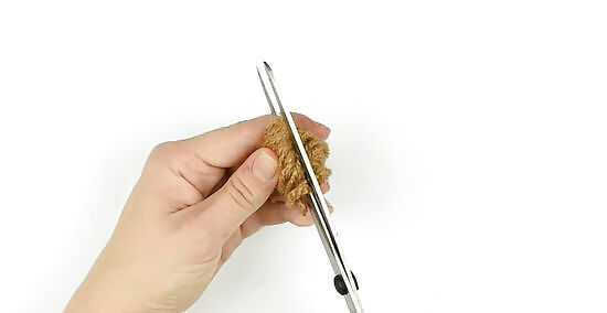 Use colored yarn and a fork to create mini pom-poms for your cat to play with. Wrap a long piece of yarn around the head of a fork about 30-35 times. Wrap a separate piece of yarn that is at least 6 in (15 cm) long around the center of the yarn loops. Slide the bundle off the fork, and use a double knot to tie the center string tightly around the bundle. Hold the middle of the bundle where it is cinched, and use scissors to cut all of the loops around it. Fluff the pom-pom and let your cat enjoy playing with it. Allow your cat to play with the pom-pom alone, or tie a piece of yarn that is about 12 in (30 cm) to it, and dangle it in front of your cat for a joint activity. Make additional pom-poms so your cat can play with them all at once.