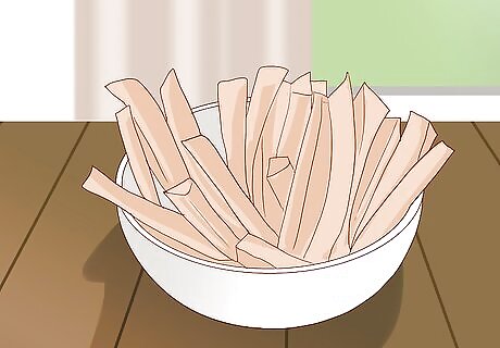 Savor sweet potato fries. Another comfort food that is especially easy to crave is french fries. When this craving kicks in, go for baked sweet potato fries instead of classic fried french fries. This will significantly reduce the fat and overall calories of your snack. Slice a sweet potato into sticks or slivers and spread them on a baking sheet coating with coconut oil. Sprinkle a conservative amount of salt and any herbs you favor on top. Bake the fries at 375°F (191°C) for about 20 minutes. Not only are sweet potatoes healthier than french fries, they make for a relatively healthy dessert as well. Use sweet instead of savory herbs, such as nutmeg and cinnamon.